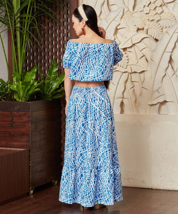 ナル(波)をイメージした爽やかな総柄は上品な